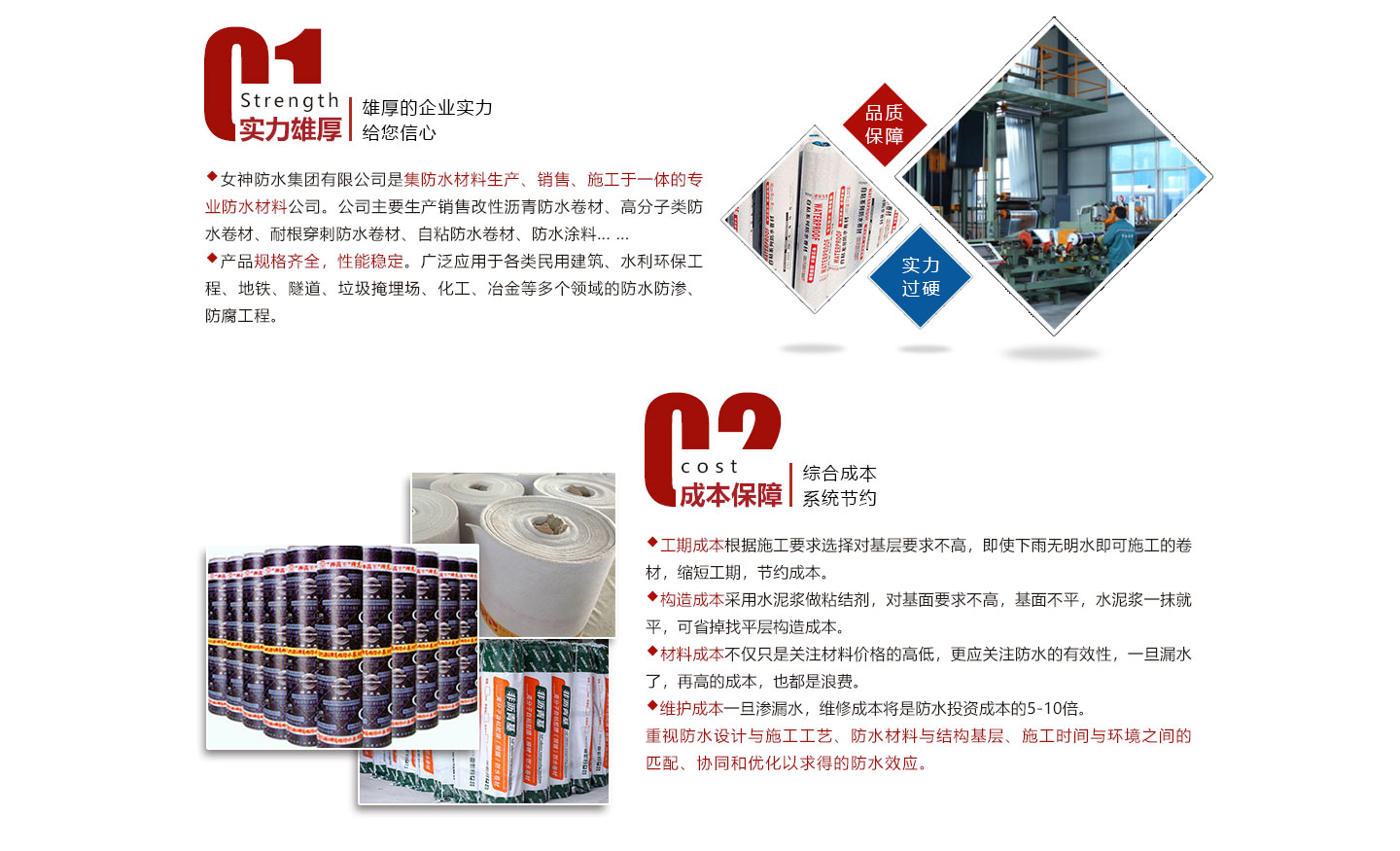 安徽女神建材科技集團有限公司是集防水材料研發(fā)、生產、銷售、施工為一體的綜合性防水材料集團公司。我公司旗下有多條大型一次成型生產線:SBS改性瀝青防水卷材,DTM聚酯復合高分子防水卷材,非瀝青基高分子防水卷材,PVC,TPO高分子防水卷材等生產線。我公司秉承“創(chuàng)新發(fā)展、實惠用戶”為宗旨,確保生產材料基礎上推出“共享生產廠家”,為開發(fā)商、建筑商節(jié)約成本為理念,新理念受到用戶企業(yè)集采時一致好評和認可。在互聯(lián)網時代,我公司將以互聯(lián)網“共享”為發(fā)展理念,為開發(fā)商、建筑商、防水企業(yè)提供的產品,真正讓用戶企業(yè)達到巨大...